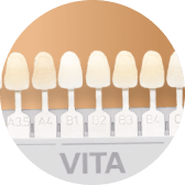 Вы выберите цвет и оттенок по шкале VITA, а также форму зубов для